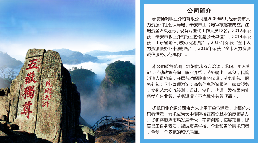 • 【招聘公告】泰安揚帆職業介紹有限公司某國有企業招聘簡章 [2025-11-28]
